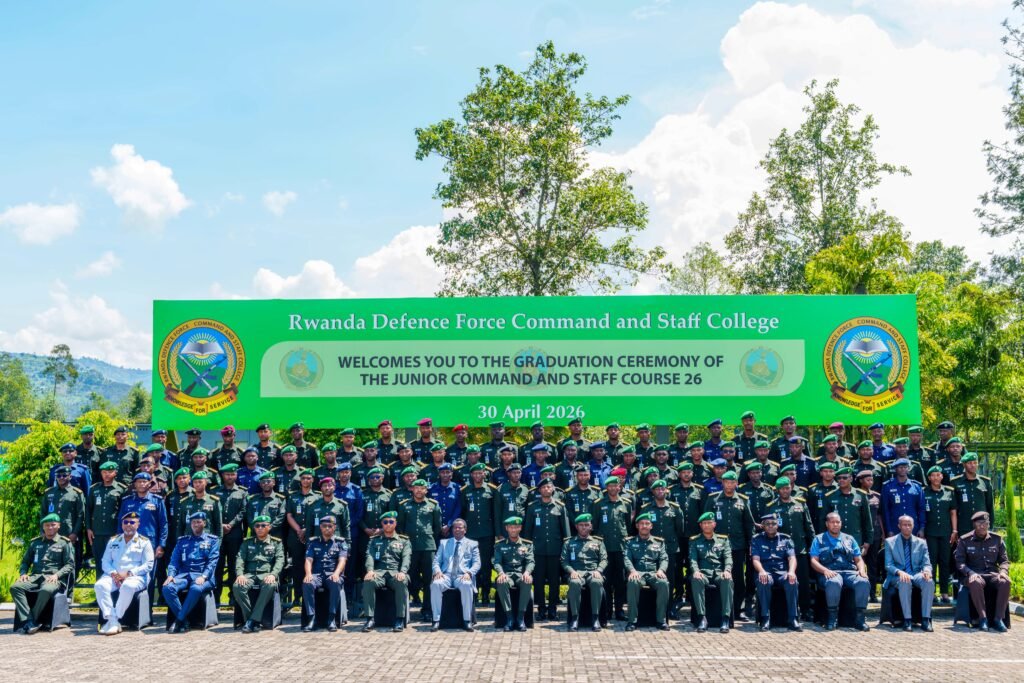 The graduation of Intake 26, presided over Thursady by RDF Chief of Defence Staff General MK Mubarakh, brought together officers from the Rwanda Defence Force, the Rwanda National Police, and the Rwanda Correctional Service, the same joint-service format the course has maintained across multiple intakes, underlining the institutional logic of building a common operational and leadership language across Rwanda’s security architecture.