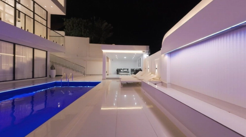 The three-storey residence features a range of high-end amenities, including a swimming pool, gym, home theatre, massage room, pool table room, dining room and a dedicated hair and beauty space, among others.